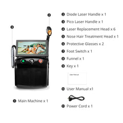 Achieve lasting hair removal with the Diode Laser and target tattoos, spots, fine lines, and more with the Pico Laser. This 2-in-1 laser machine covers a wide range of professional treatments, making it ideal for beauty salons looking to offer diverse services.