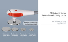 RES Probe: Employs internal heating technology to target deep body substances, accelerating circulation and supporting reduction of subcutaneous and visceral substances. The probe works to regulate body temperature and boost immunity. It penetrates up to 12 cm into the skin, addressing superficial, middle, and deep fascia layers to promote bi-directional circulation.