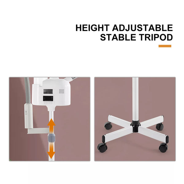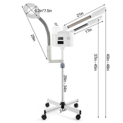 • Easy To Use - Facial steamer machine with 4-leg wheeled stable stand base that allows you to move around in the salon freely. Flexible arm can rotate left and right with 360 degrees and flip up and down 180 degrees. High adjustable from 37\"-45\"/40\"-48\".