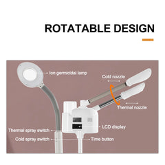 5in1 Functions: Hot steam, Cold steam, 5X Magnifying Lamp, Ozone and Timer Function