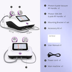 Engineered with dual frequencies of 30kHz and 50kHz, this handpiece delivers targeted body contouring for different body zones. The integrated radiofrequency stimulates collagen regeneration, helping to firm sagging skin while refining its texture for a smoother, more toned appearance.